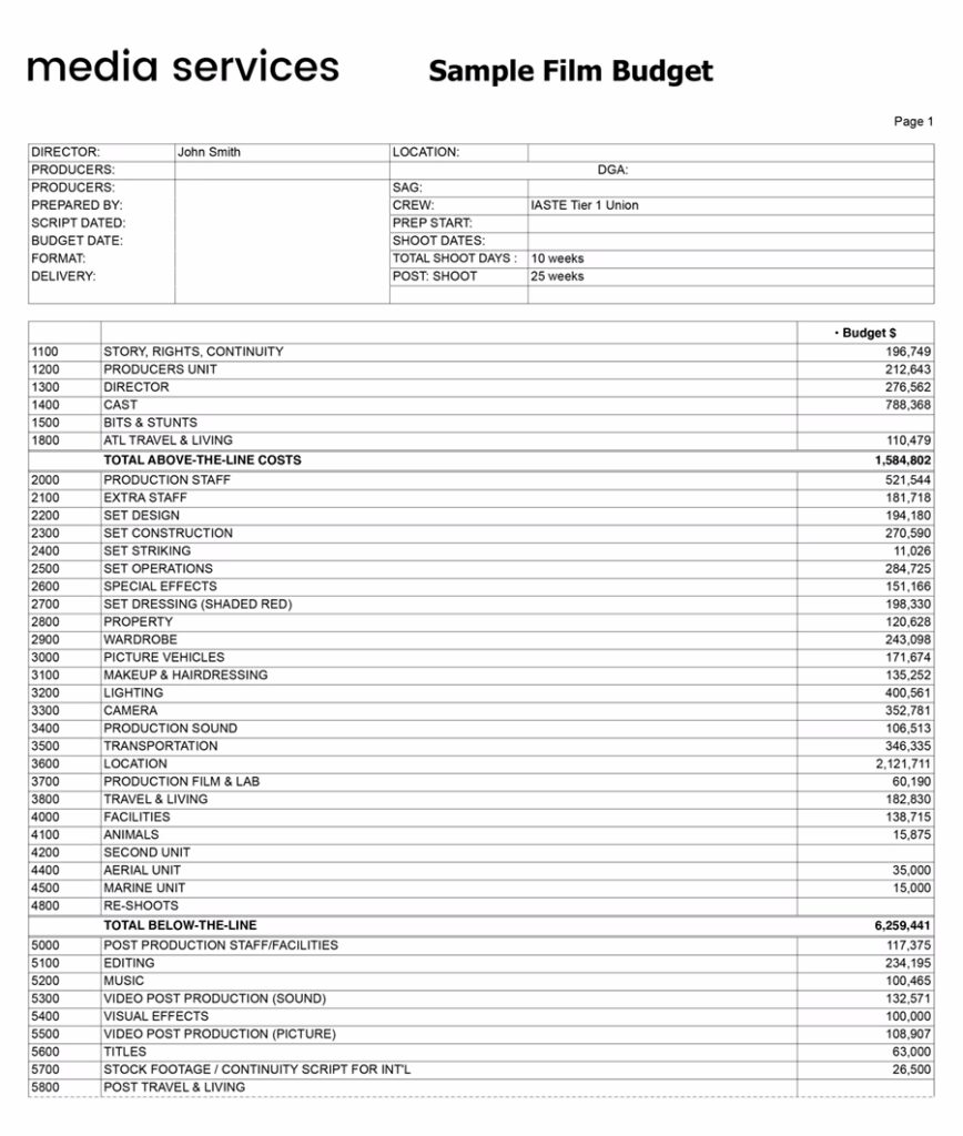 Explore a real-world $9.6M sample budget and learn how departments, insurance, and contingency should be structured